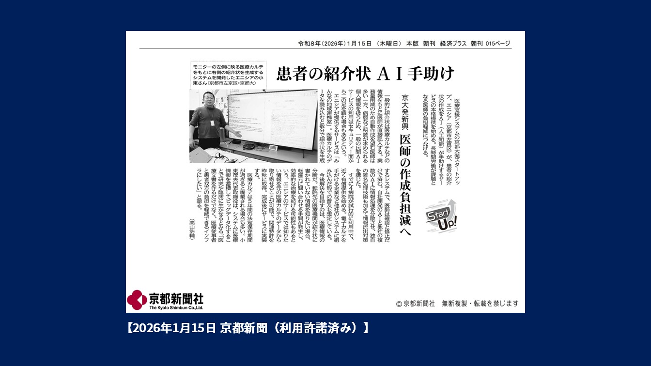 京都新聞に医師文書生成AIサービス『みんなの地域連携室®』が掲載されました!
